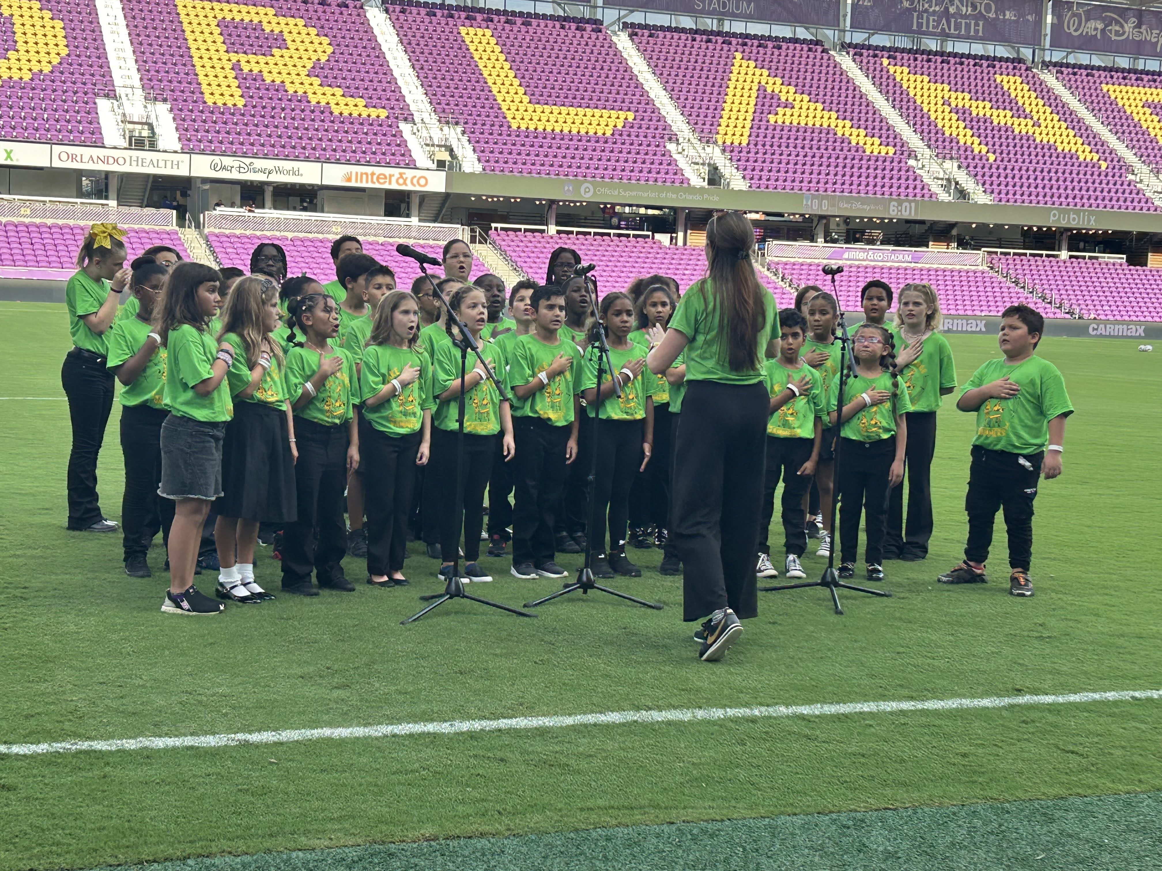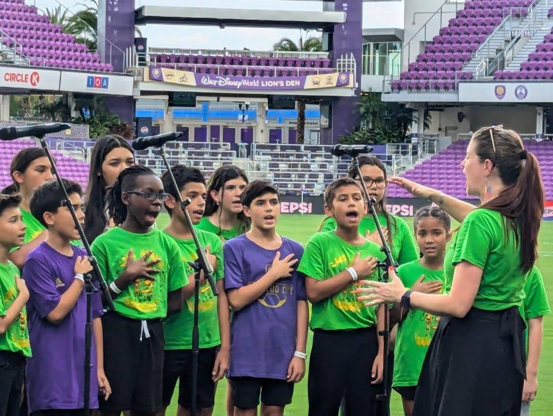 Our beginning and advanced jammers came together for our first performance of the 24-25 school year to sing the National Anthem for our Orlando Pride women’s soccer team! They did amazing! So proud of our Jammers!